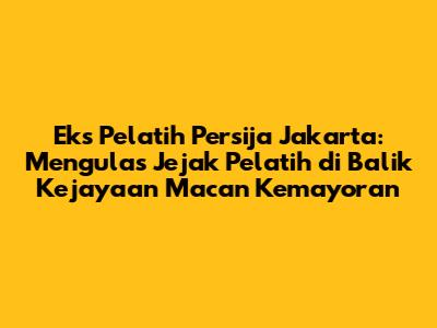 Persija Jakarta memiliki sejarah panjang dengan berbagai pelatih yang datang dan pergi. Beberapa di antaranya berhasil meninggalkan kesan mendalam dan membawa prestasi bagi Macan Kemayoran. Berikut adalah beberapa nama mantan pelatih Persija Jakarta yang patut dikenang: